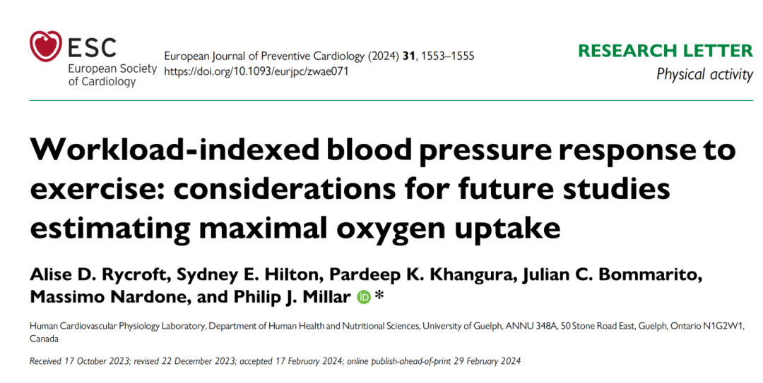 近期,一篇关于运动负荷指数化血压反应的研究在《欧洲预防心脏病学杂志》上发表。这篇研究探讨了运动过程中血压反应与最大摄氧量(VO2max)之间的关系,并评估了使用不同公式估算VO2max对预测心血管风险的有效性。本文旨在帮助医务人员了解该研究的关键发现及其在临床实践中的应用价值。