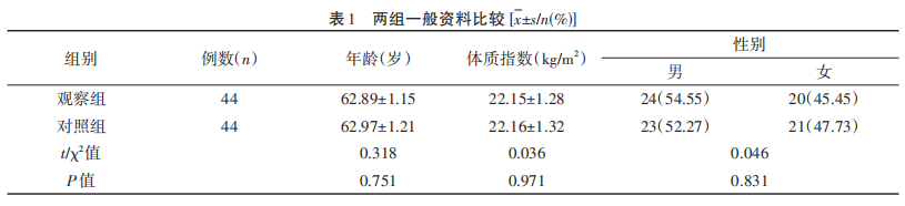 基本信息对比,差异无统计学意义(P>0.05),详见表1。