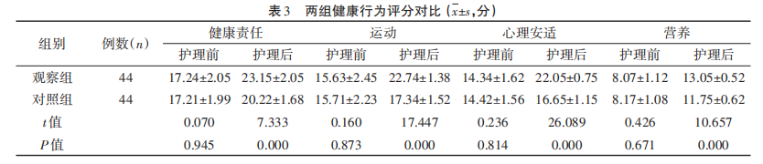 护理后SRAHP评分,观察组高于对照组,差异有统计学意义(P<0.05),详见表3。