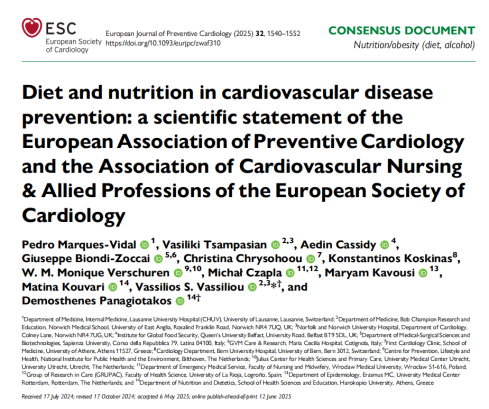 近日,欧洲预防心脏病协会(EAPC)与欧洲心脏病学会(ESC)下属心血管护理与相关专业协会(ACNAP)在《欧洲预防心脏病学杂志》(European Journal of Preventive Cardiology)上联合发布了一份关于心血管疾病(CVD)预防中饮食与营养的重磅科学共识声明 。