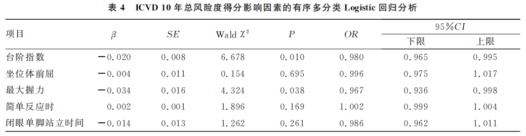 2.4 ICVD10年总风险度得分影响因素的有序多分类Logistic回归分析
