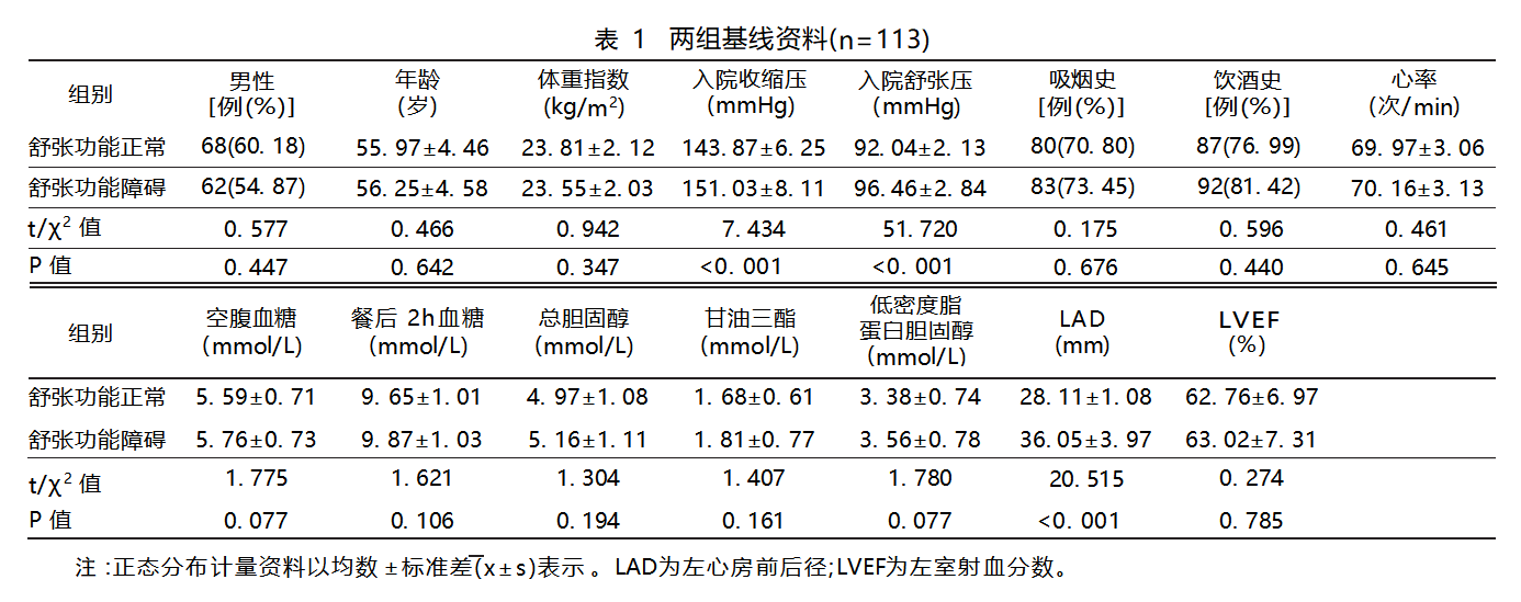 2.1 舒张功能正常组与舒张功能异常组基线资料