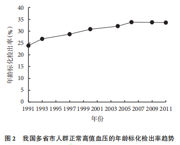关于发病率的趋势研究很少,中国台湾学者的研究表明,高血压的发病率是下降的。但不同队列的人群可能存在不同质的问题,如年龄构成不同、性别构成不同、BMI不同等,人群的不同质和随访时间的长短可能影响了高血压的发生,基于同质人群的高血压发病趋势探索尚缺乏研究。