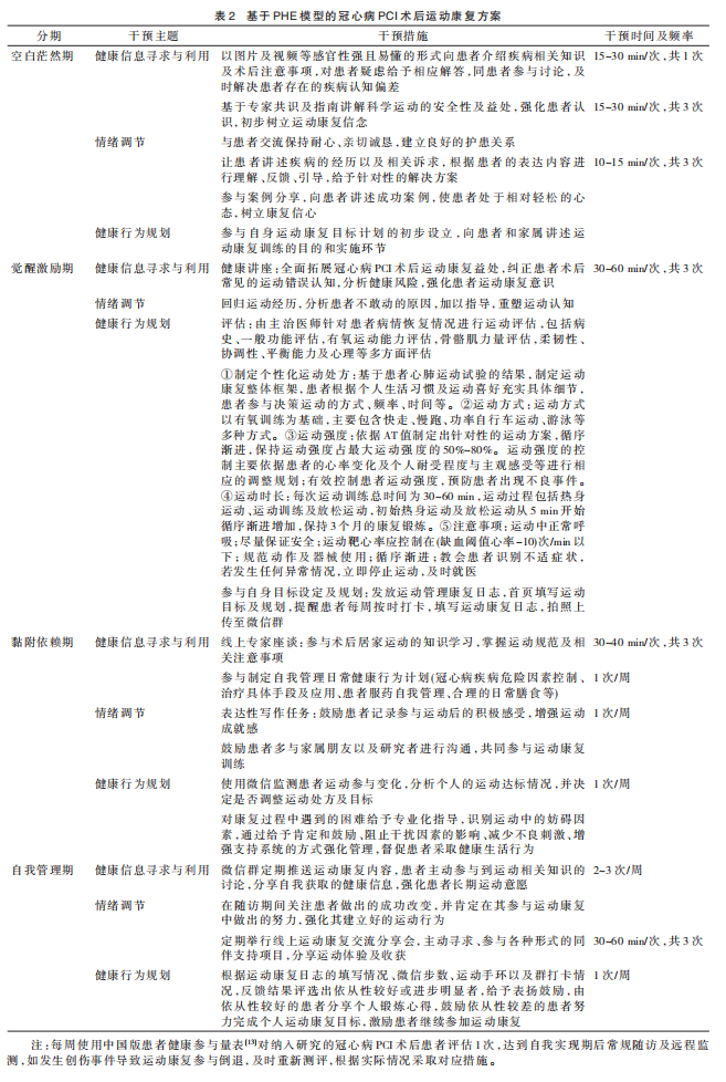 基于PHE模型的冠心病PCI术后患者运动康复方案的构建
