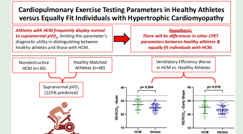 长期高强度运动会引起心脏生理性肥厚,被称为“运动员心”。然而,这种表现有时与轻度肥厚型心肌病(HCM)在影像学上极为相似。HCM是运动员猝死最常见的原因之一,因此,如何区分生理性与病理性左心室肥厚(LVH)至关重要。以往医生常依赖峰值氧耗量(pVO₂)来判断心脏功能,但许多HCM患者依然表现出超常的pVO₂(>120%预测值),使单靠此指标难以诊断。研究团队提出是否可以通过通气效率(ventilatory efficiency)等其他CPET参数来揭示潜在差异。