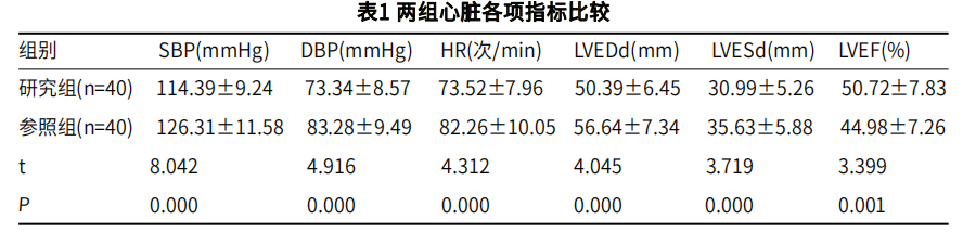 两组患者心脏各项指标情况比较:研究组优于参照组患者(P<0.05)。详见表1。