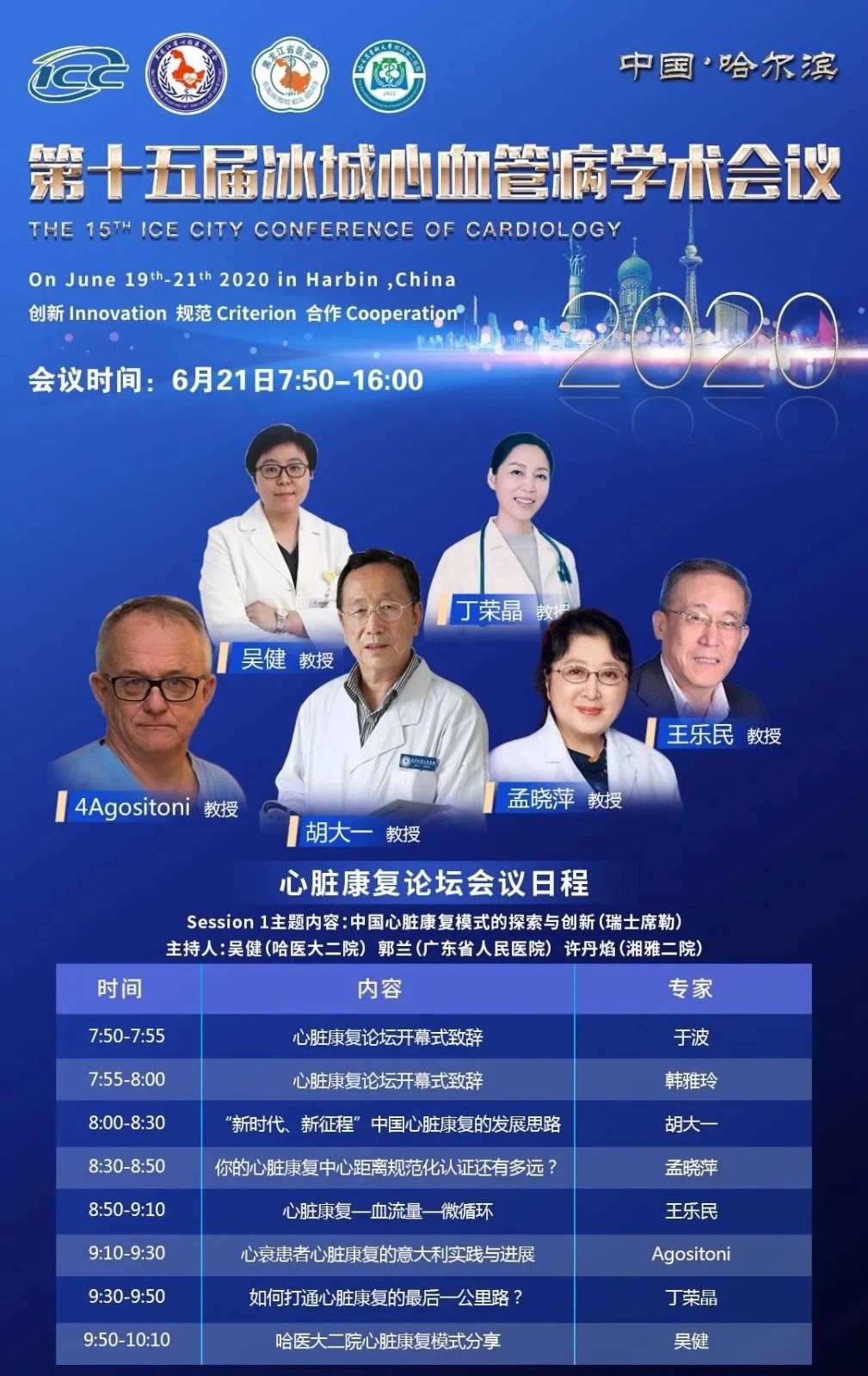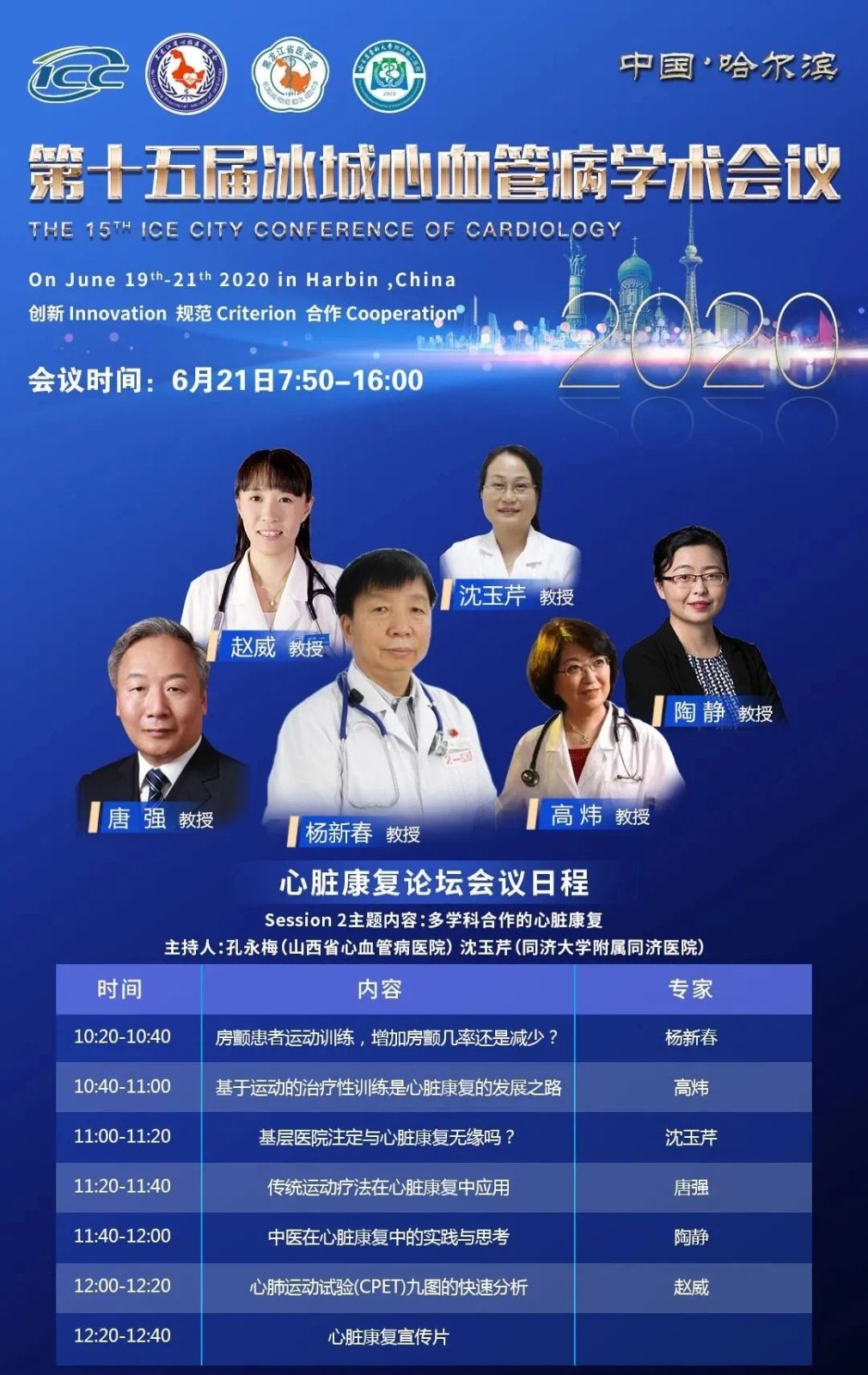 由黑龙江省医学会及黑龙江省心脏医学学会共同主办、哈尔滨医科大学附属第二医院承办的第十五届冰城心血管病学术会议(ICC2020)将采取线上形式,于2020年6月19日到21日为各位同仁呈现一场形式新颖、内容紧凑丰富、低成本、高效率的学术会议。其中心脏康复论坛将于6月21日准时开启。
