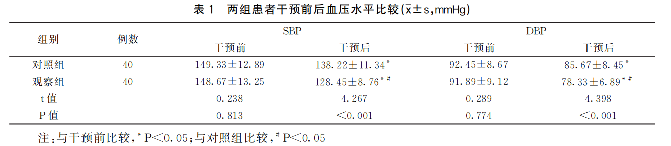 2.1 两组患者干预前后血压水平比较